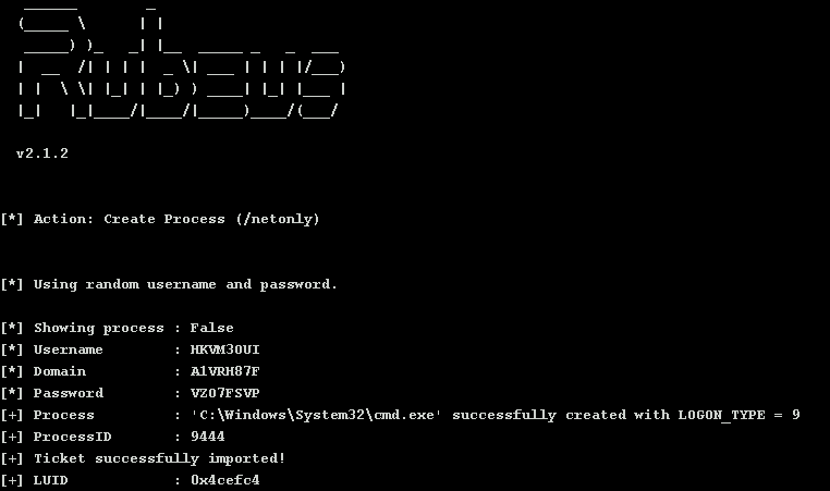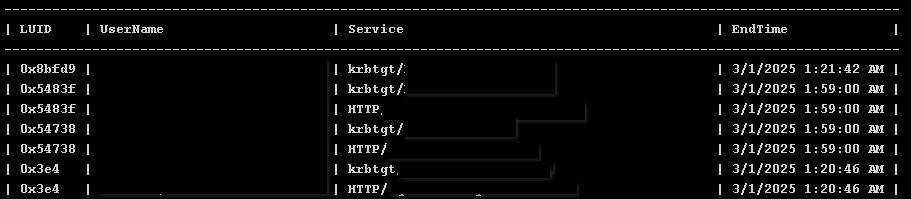 Better opsec is to use Rubeus passing in a ticket to create a new session. Rubeus reveals the LUID and PID created using the ticket. Triage will also then show a new entry of that LUID.