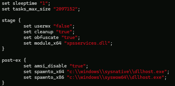 CS contains profiles that determine how it's beacons operate and communicate back to the server. Some basic improvements over the default are: Setting DLLs to RW/RX instead of RWX. Cleanup to remove memory of the reflective loader after it being loaded. Obfuscate to remove the DLL headers in memory. Spawning post-ex processes as DLLHOST instead of the normal RunDLL32, which instantly is caught by AVs.