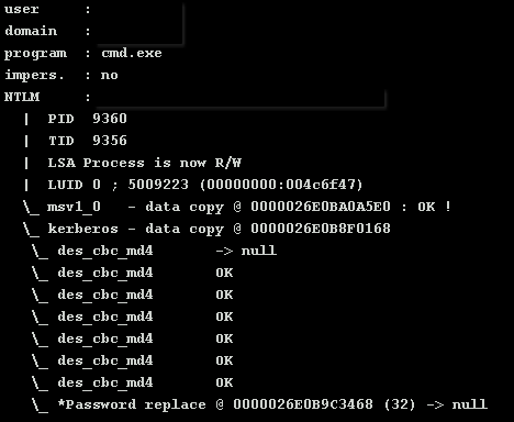 Hashes can be passed to create new sessions, here is an example using mimikatz. Easily signatured and caught by EDRs however. The output reveals the PID that can be stolen later.