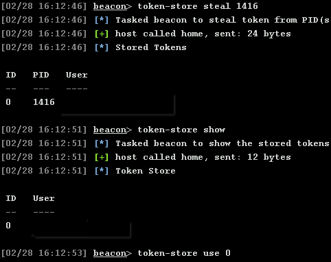 CS provides a wonderful ability to steal token using token-store steal. These tokens are stored in the beacon session, and can be using using token-store use. These tokens are only stored on the current beacon, and are not accessible in other beacons.