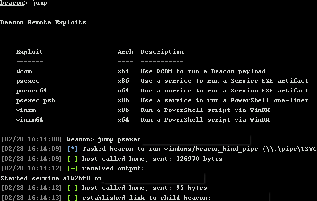 Jump is a command available in CS with defaults of psexec, psexec64, psexec_psh (powershell one liner), winrm and winrm64. New methods can be added such as dcom. Another reason why C2s are good in enterprise environments.
