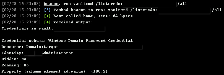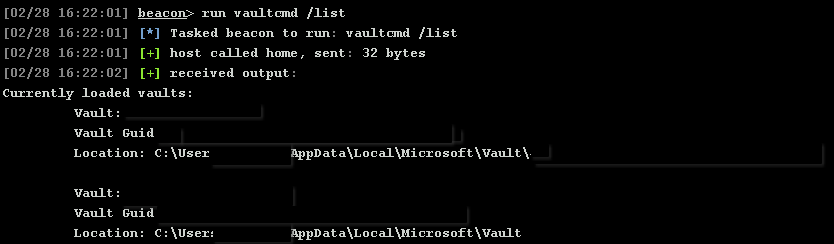 Vaultcmd can be used to enumerate existing vaults and their GUIDS.