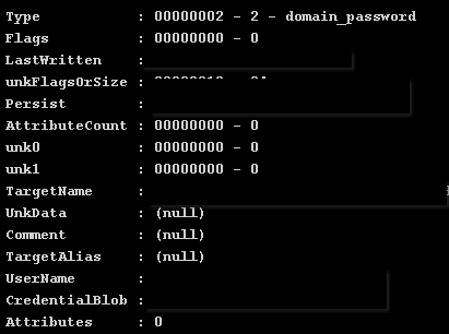 Similar to previous method we can use the masterkey gained using mimikatz, the credential path and mimikatz to dump the stored credential.