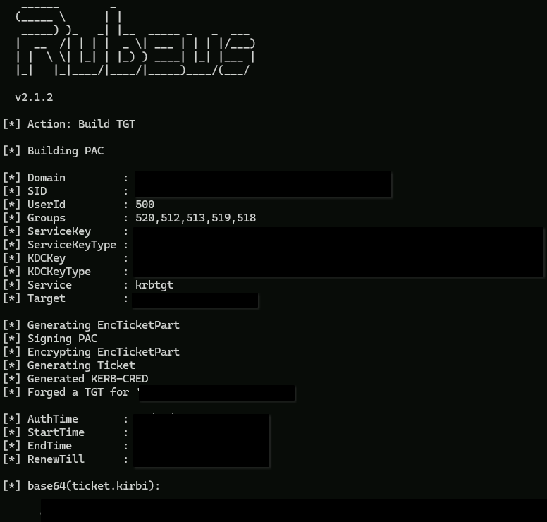 A forged TGT signed by the domains KRBTGT account. Access to any user, on any machine, any service. Never changed.