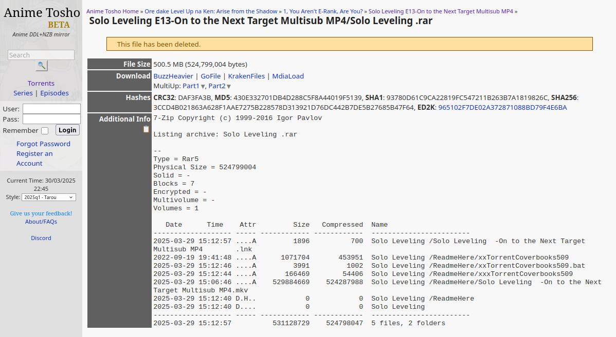 [1]: https://animetosho.org/file/solo-leveling-e13-next-target-multisub-mp4-solo-leveling-rar.1264939 ↩
