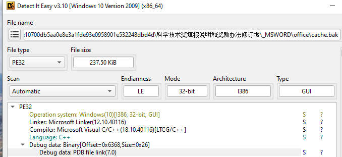 - DetectItEasy v3.10 (DiE) for static analysis, imports, strings.
