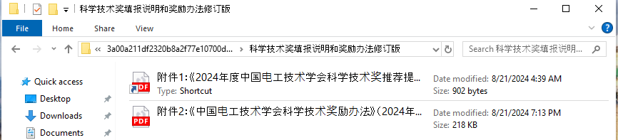 - Appendix 1: Instructions for filling out the ”2024 China Electrotechnical Society Science and Technology Award Recommendation Nomination” (Technology Invention Award and Science and Technology Progress Award) (August 2024 new version).pdf.lnk