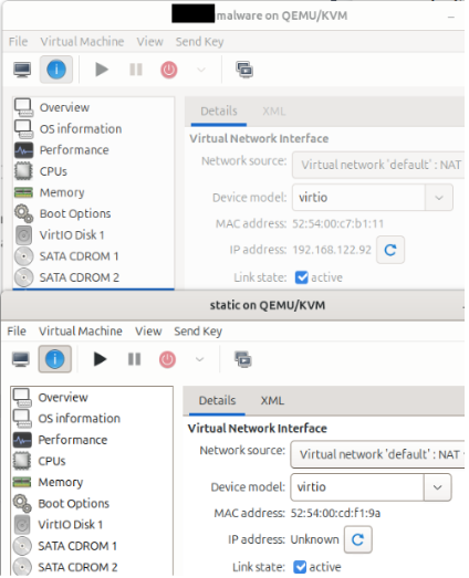 Two separate VMs were used, one for static and one for dynamic analysis. They are clones of each other the only real difference is one has access to the internet (static) and one does not (dynamic).creating our own flare-vm