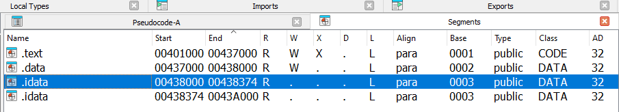 Interesting data found in the config and debug sections of PEBear detailed. Public information suggests that the SEHandlerTable lists addresses that allow for code execution when an exception is thrown. Typically, memory addresses are limited in execution privileges however attackers circumvent this by either loading a payload into the .text section of the binary or using one of the addresses listed in SEHandlerTable. Debugging section reveals debug symbols left over from when the binary was compiled, this is useful when loading into a decompiler.